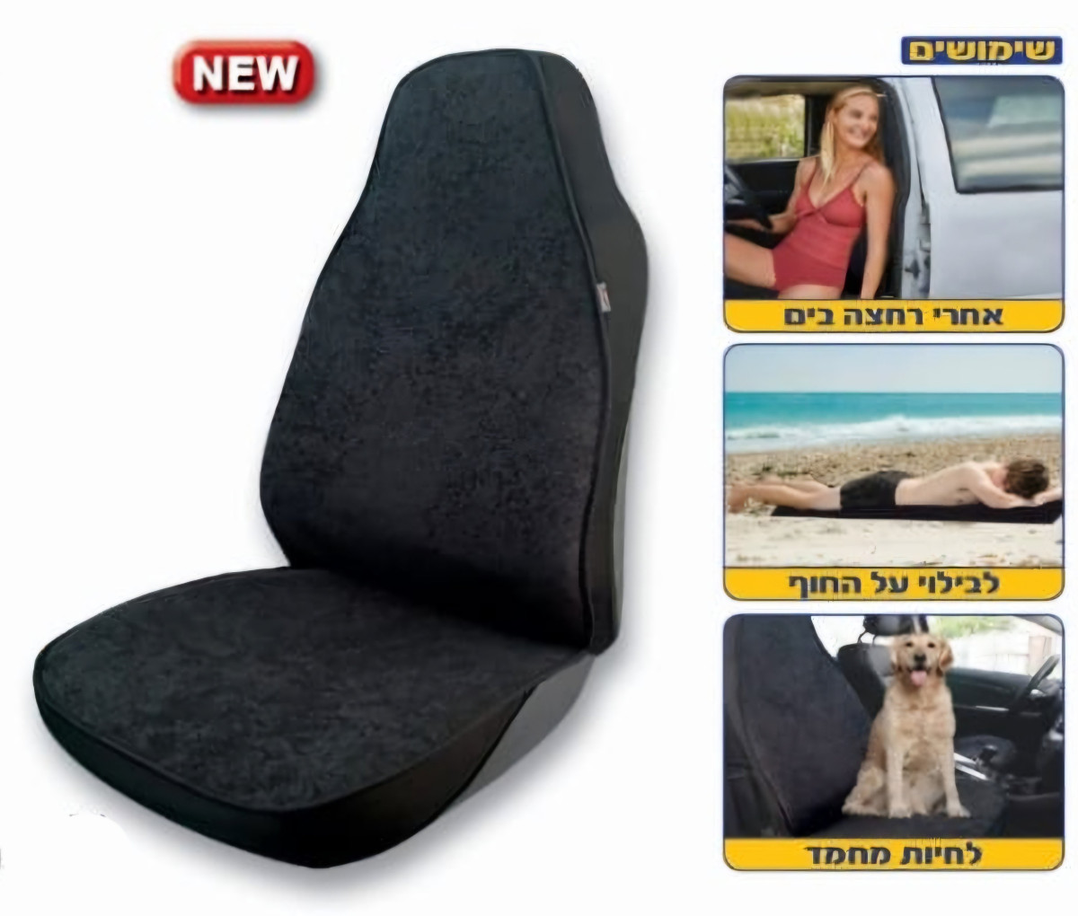 כיסוי למושב הקדמי עשוי מבד מגבת נעים למגע ועמיד לאורך זמן