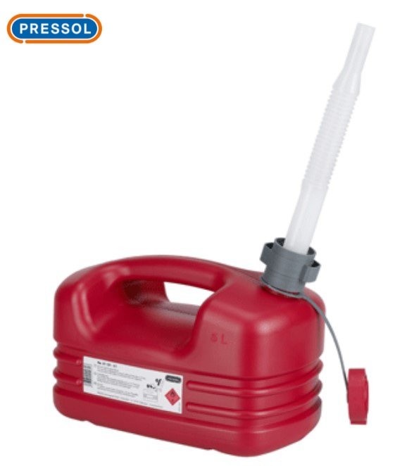מיכל דלק 5 ליטר פלסטיק + משפך גמיש PRESSOL