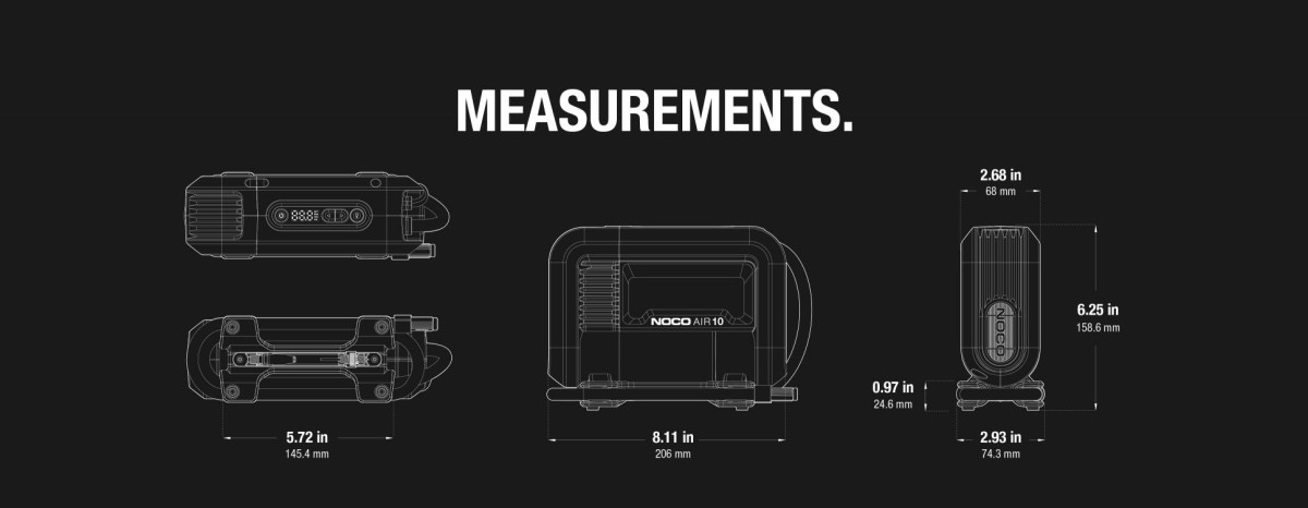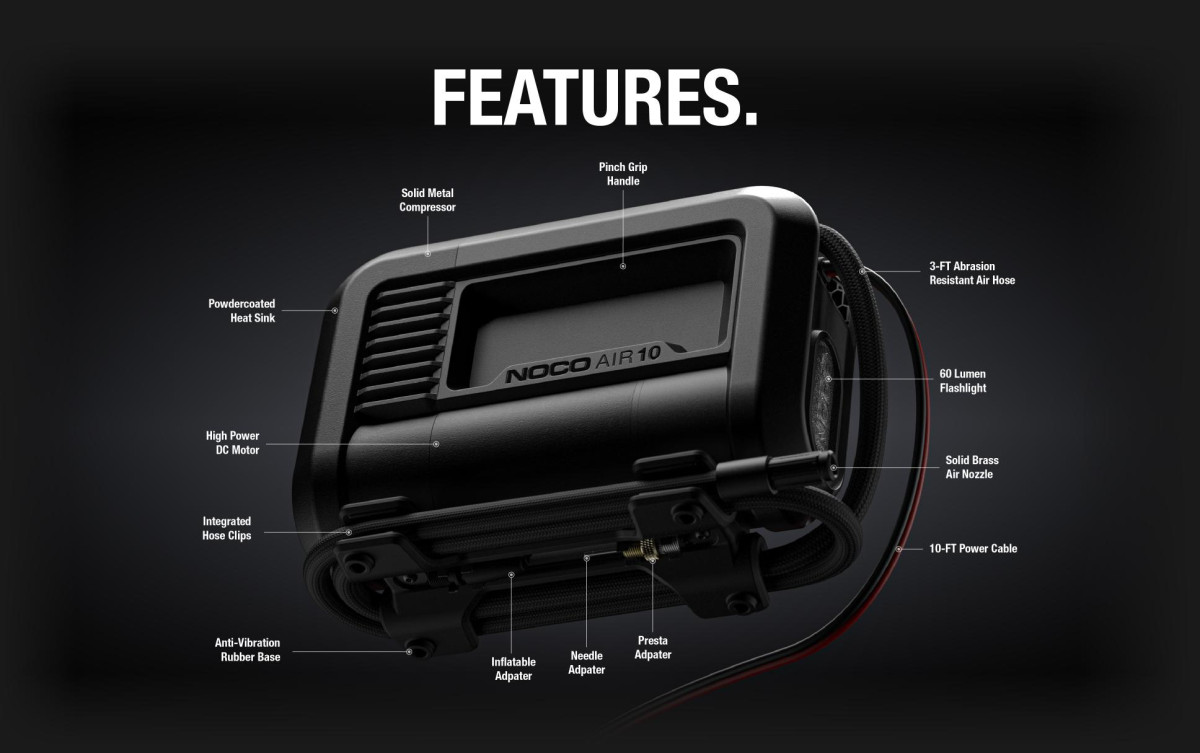 היכרות עם NOCO AIR10 – הדור הבא של מדחסי אוויר ניידים המשתמשים בעיצוב מנוע מתקדם וזרימת אוויר עם ביצועים בלתי מתפשרים עבור צמיגים עד 31 אינץ'. הוא פועל יותר, מתמלא מהר יותר וטוב יותר לאין שיעור.